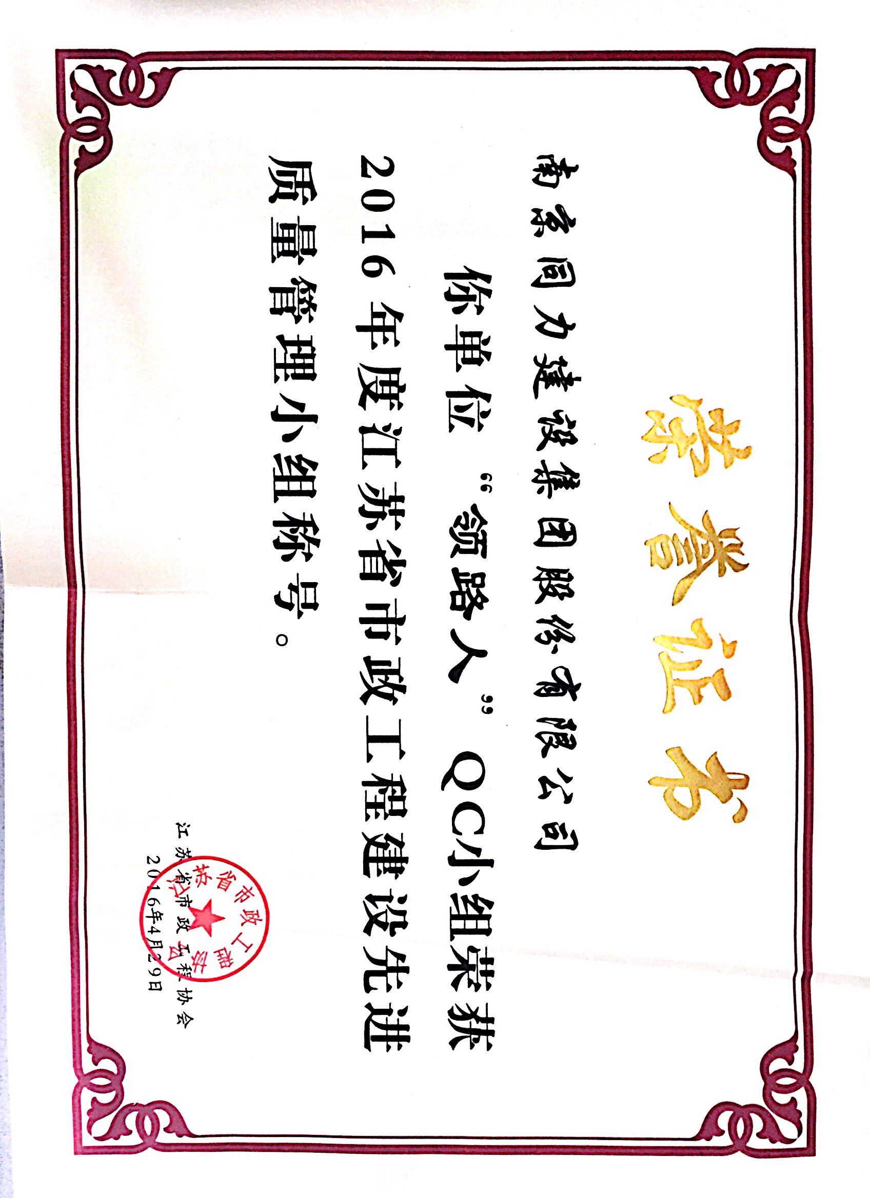 “領(lǐng)路人”QC小組獲得“2016年度江蘇省市...