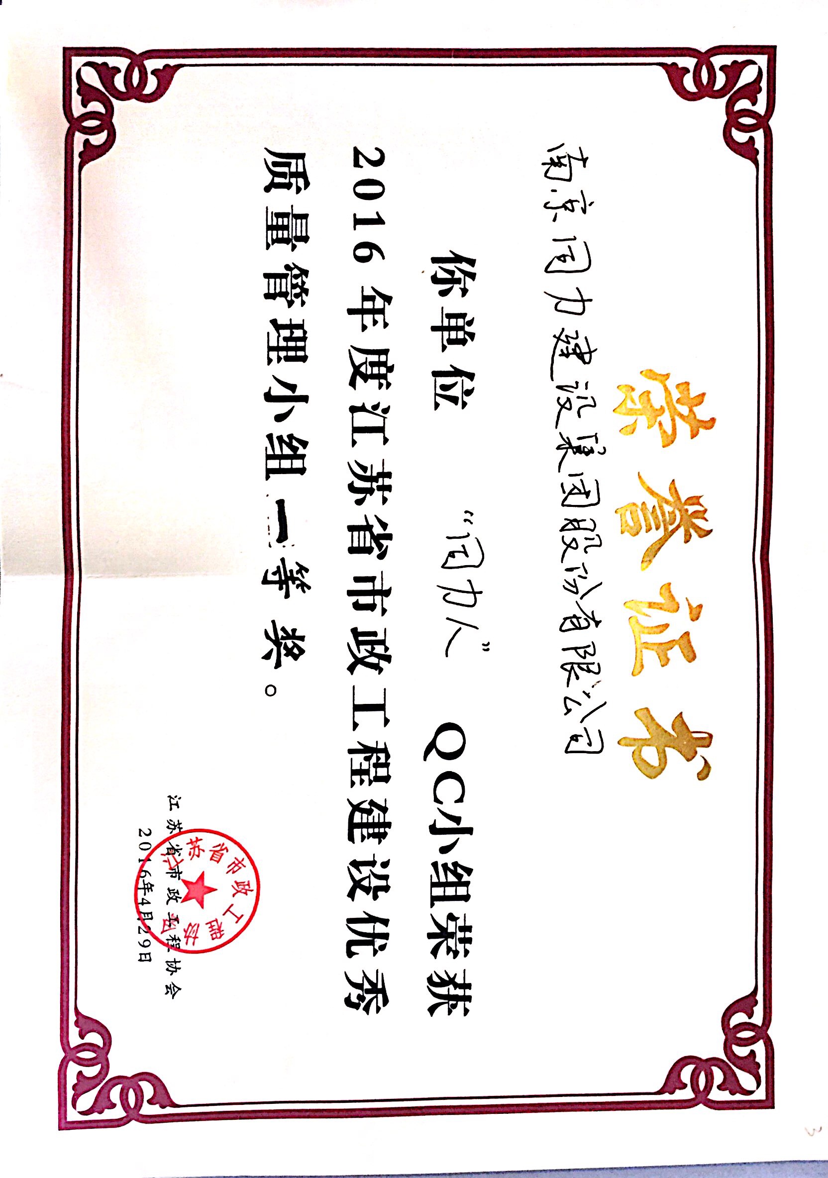 “同力人”QC小組獲得“2016年度江蘇省市...