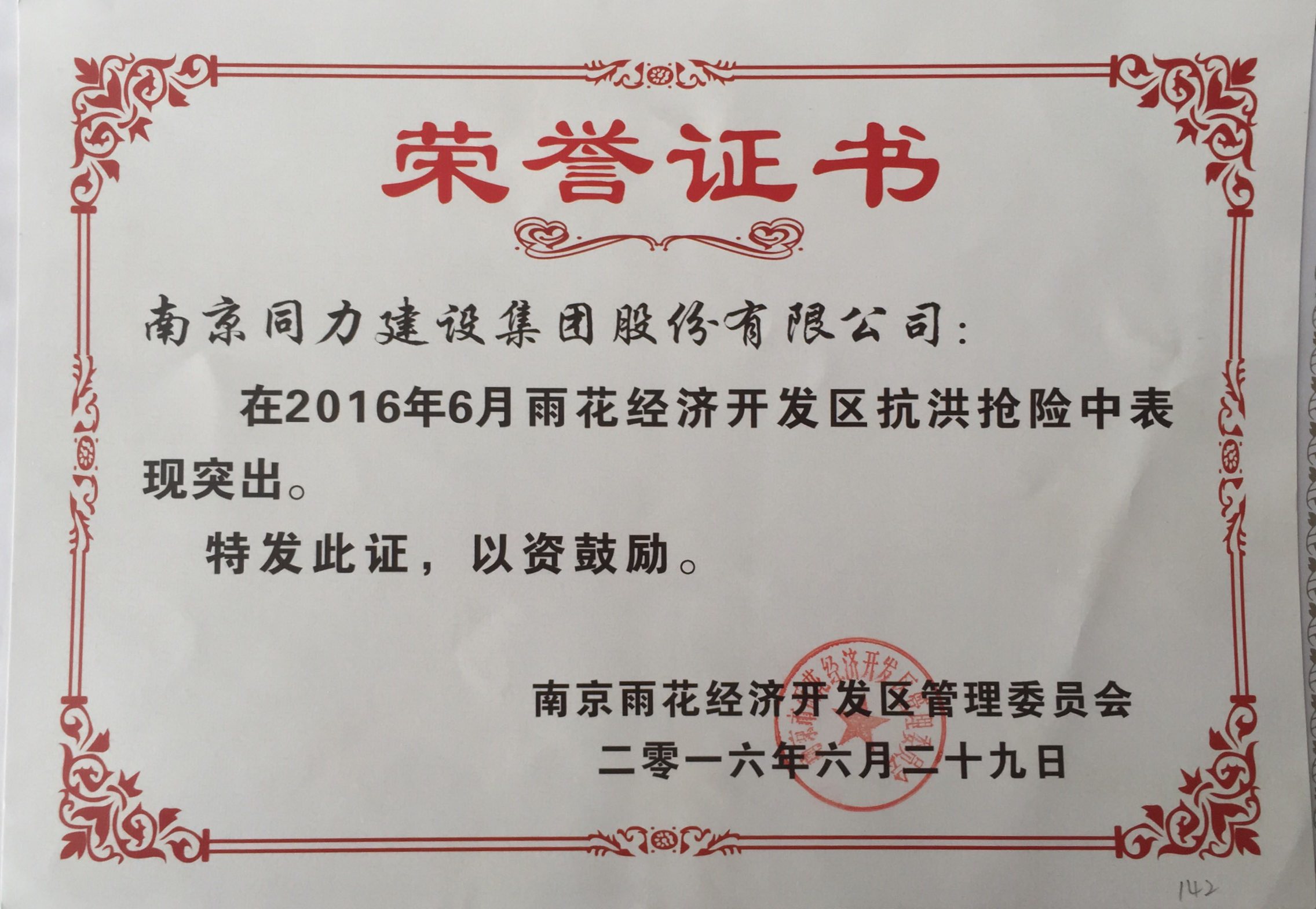 公司受到“雨花經(jīng)濟開(kāi)發(fā)區抗洪搶險表彰...