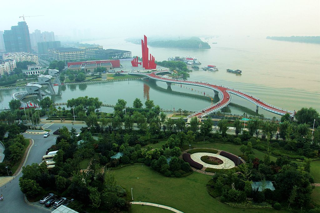 三汊河口人行橋位于外秦淮河的三汊河口閘下游,南起渡江勝利紀念館廣場(chǎng),北至淮濱路。橋位處河道寬度約200m,河口北側為世茂濱江新城,南側為渡江勝利紀念館和“千帆競渡”雕塑,橋位東側約110m為三汊河口閘,東側約300m為下關(guān)大橋。