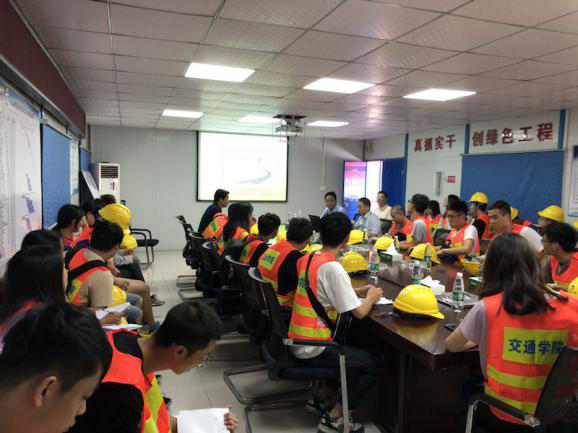 9月7日上午,南京工業(yè)大學(xué)交通學(xué)院一行80余學(xué)生在校方老師的帶領(lǐng)下,來(lái)到了工程一分公司施工的紅山路隧道項目經(jīng)理部進(jìn)行參觀(guān)學(xué)習。在項目部門(mén)口,經(jīng)過(guò)簡(jiǎn)要介紹后,一行人分為兩組,一組在項目經(jīng)理丁健的帶領(lǐng)下參觀(guān)施工現場(chǎng),另一組由公司市場(chǎng)部經(jīng)理徐雋組織在項目部會(huì )議室聽(tīng)取紅山路項目施工工藝介紹及大校場(chǎng)隧道技術(shù)工藝總結,之后兩組人員輪換,讓每個(gè)學(xué)生都可以從理論到現場(chǎng)對整個(gè)隧道施工有一定的了解。